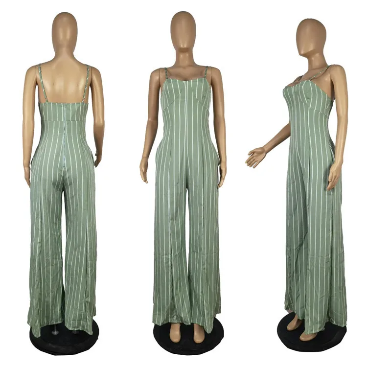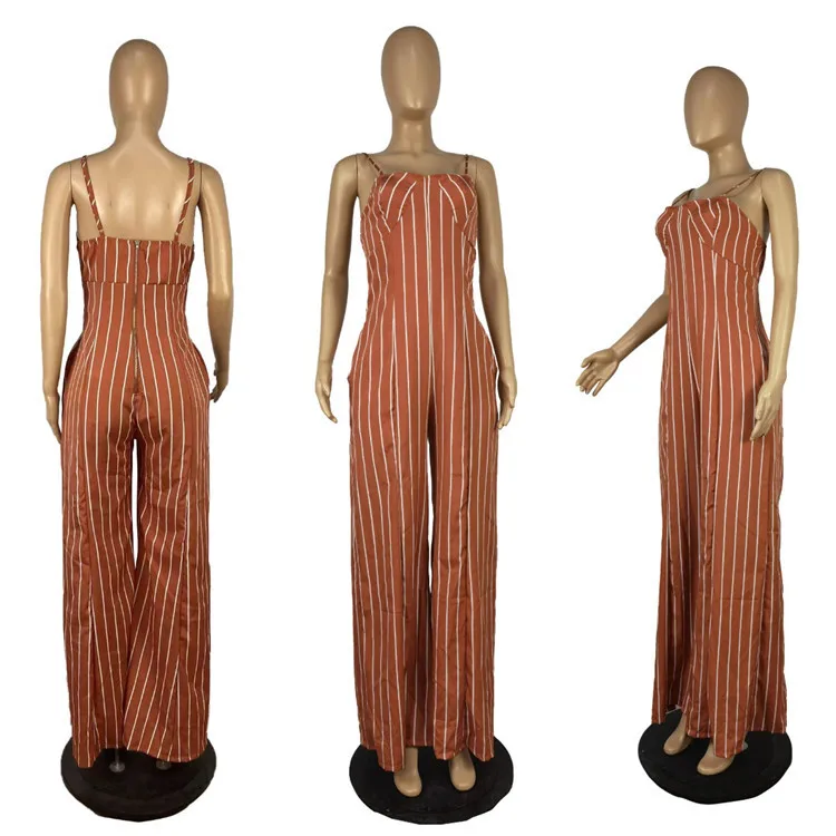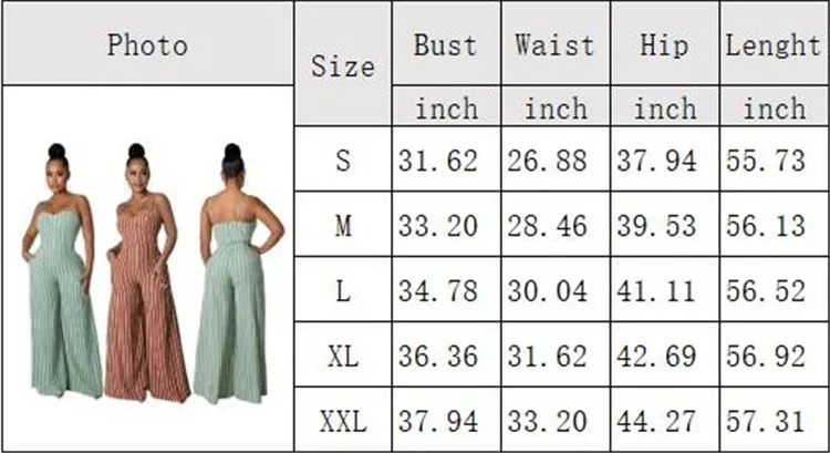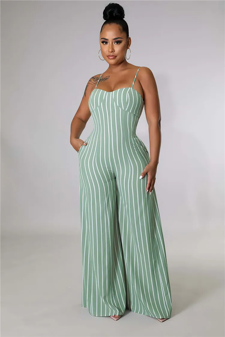 Woman Suspender One Piece Rompers Stripe Print Wide Leg Long Pants Plus Size Jumpsuits